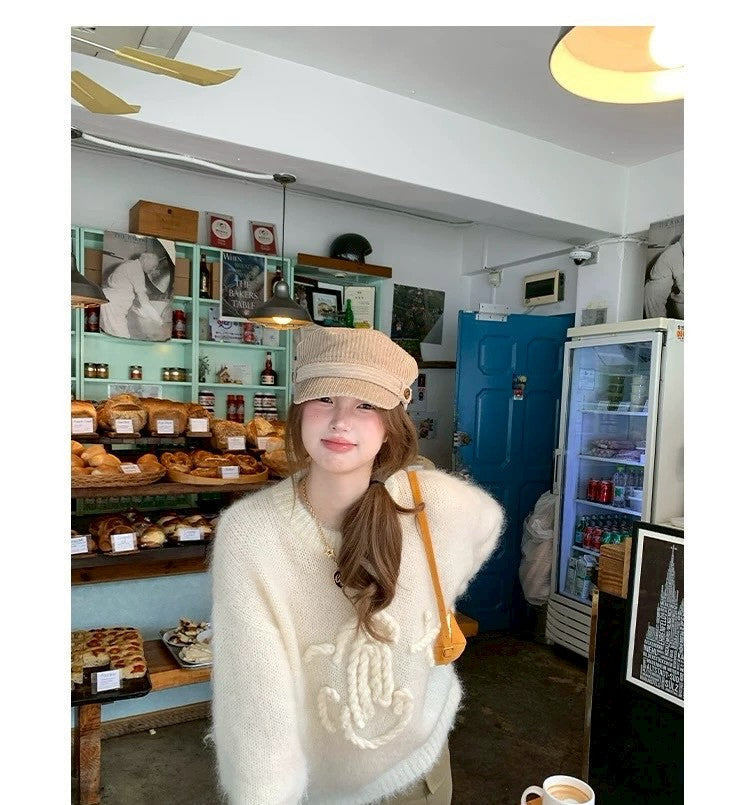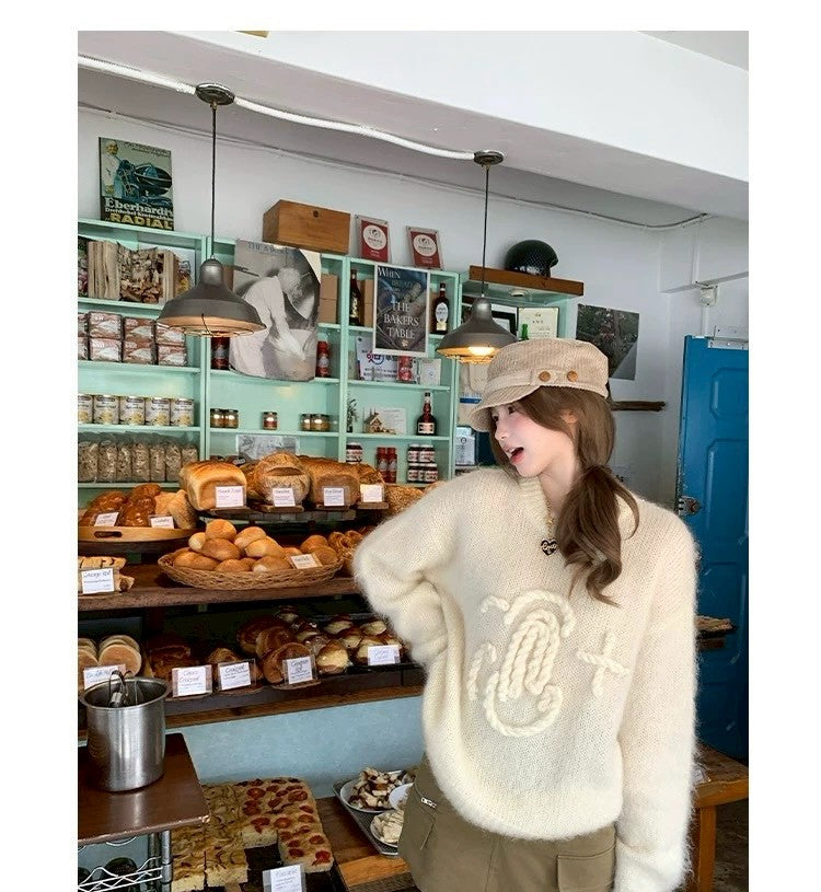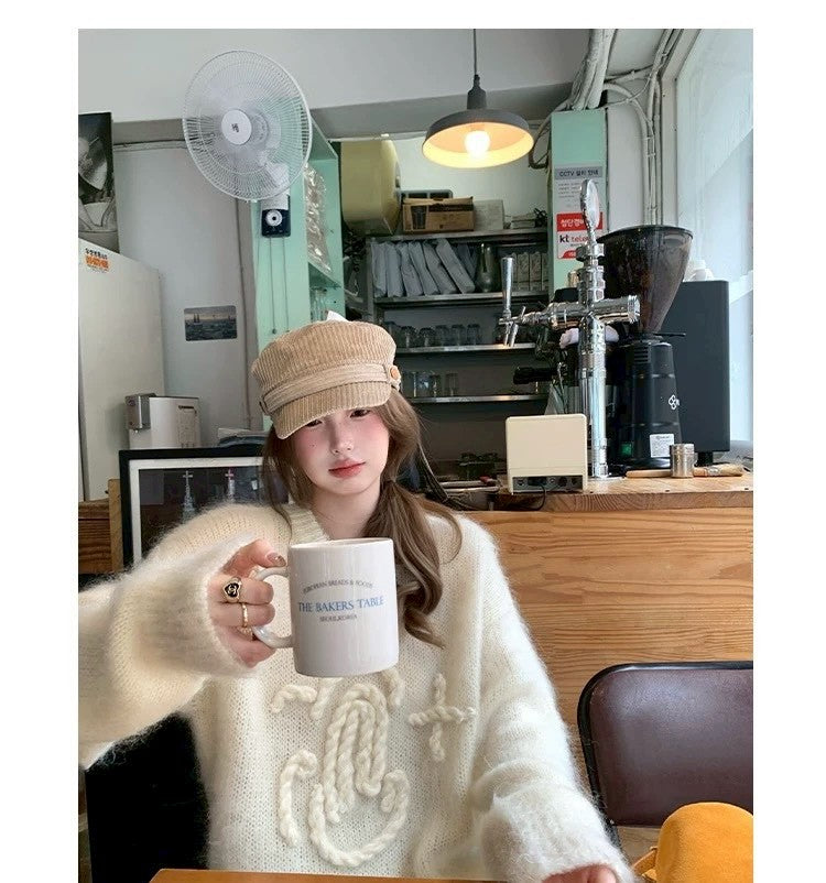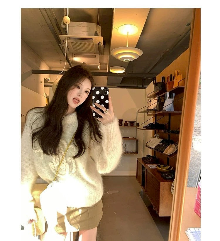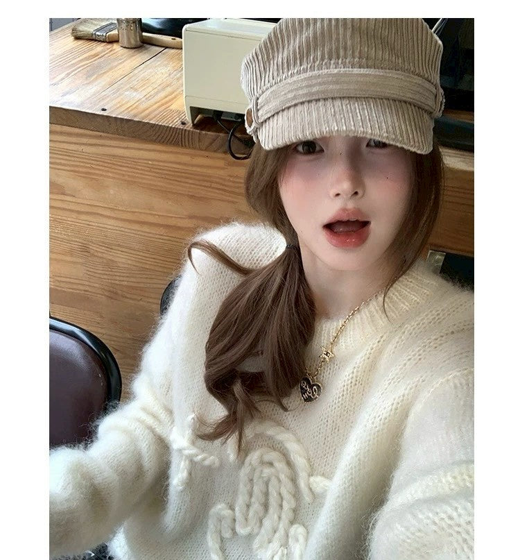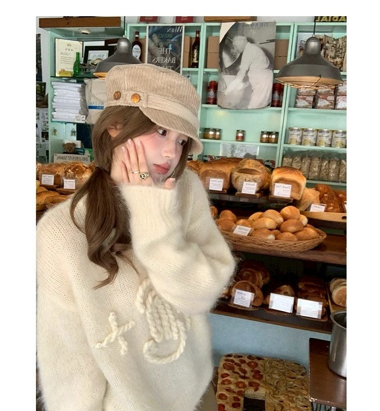 Tue. 昆丁少女圓領麻繩編針織上衣 米