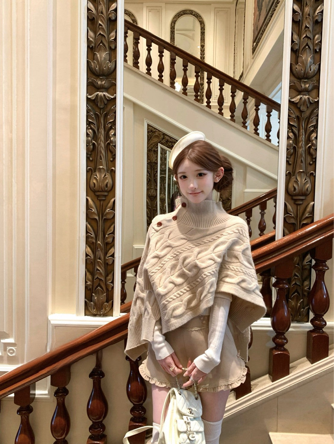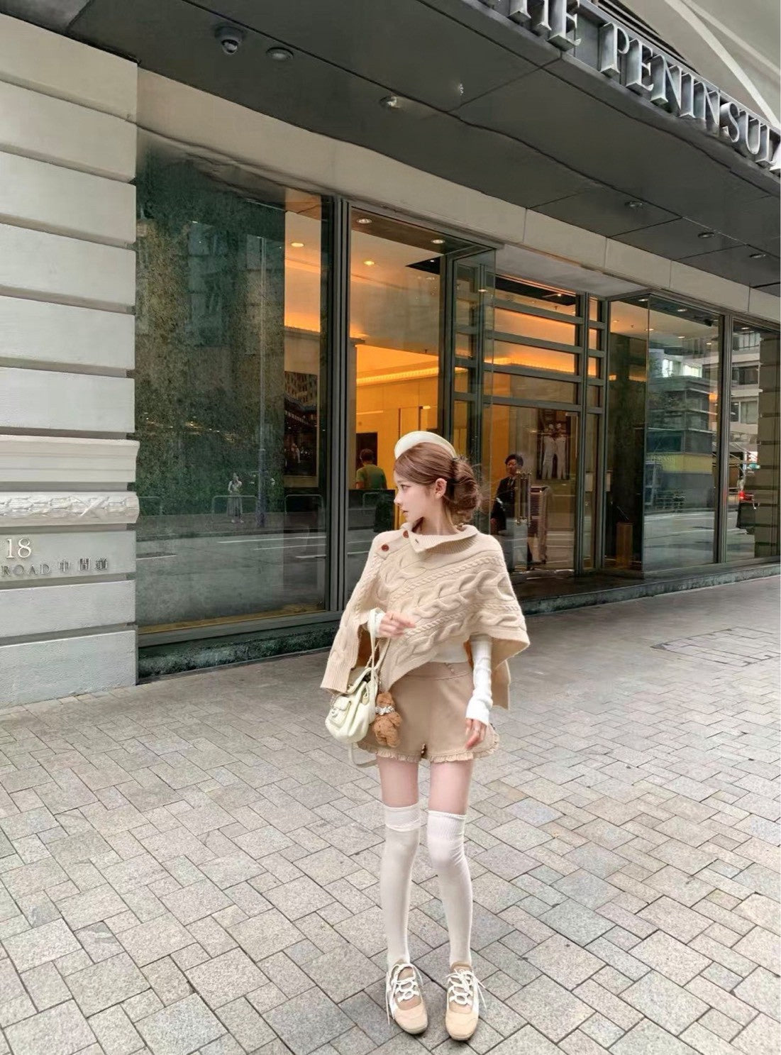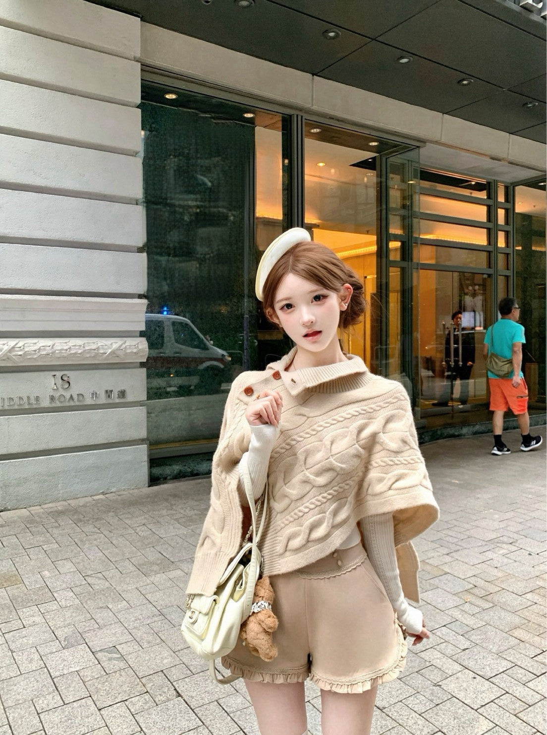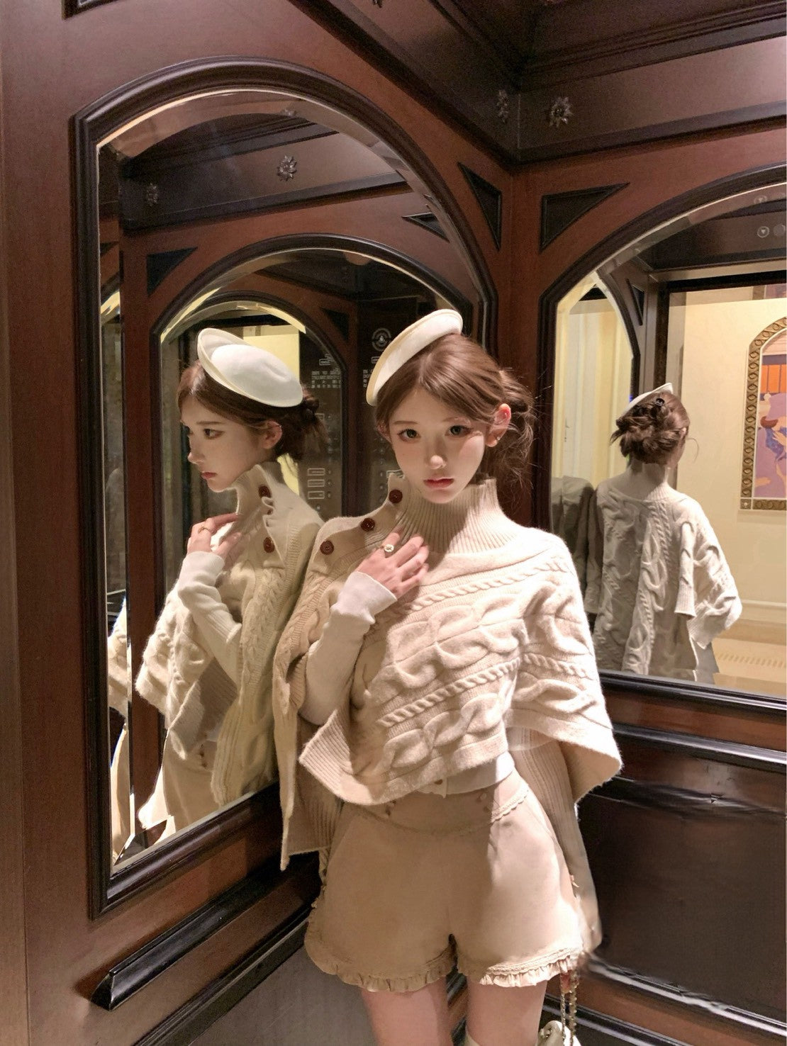 Tue. 焦糖Vivien土星高領麻花斗篷 花邊短褲