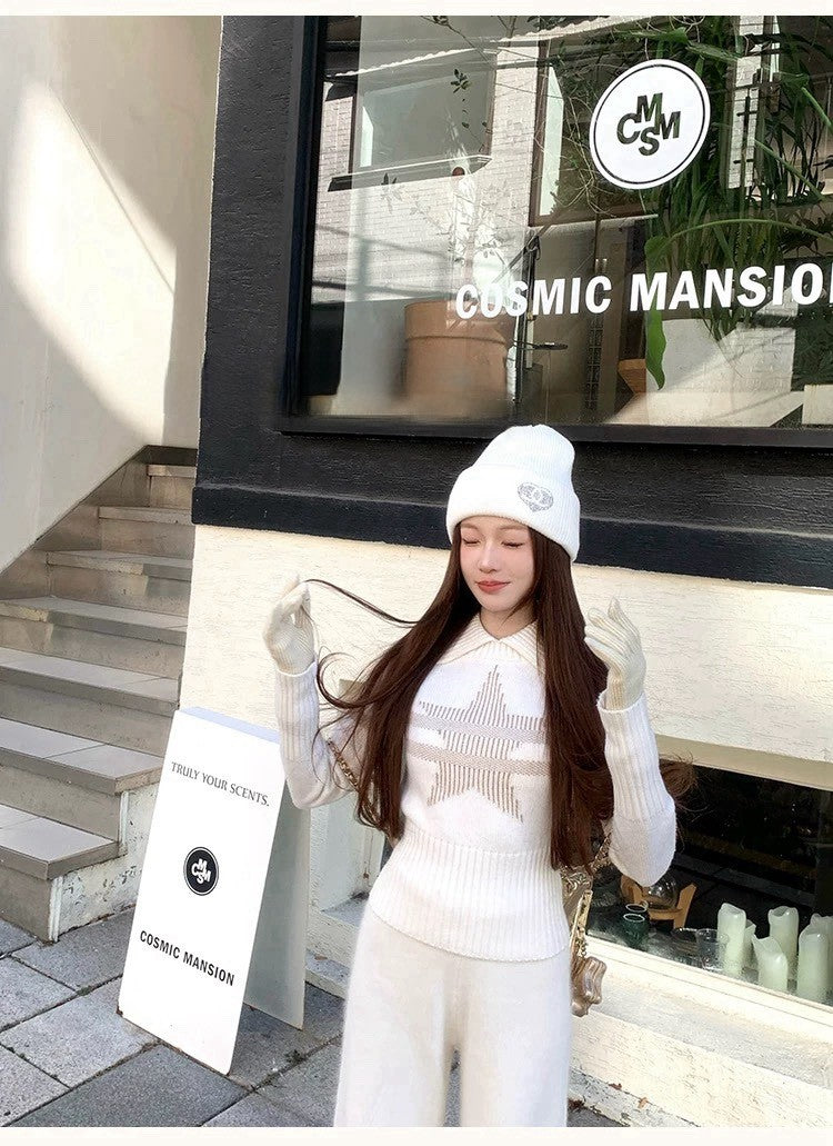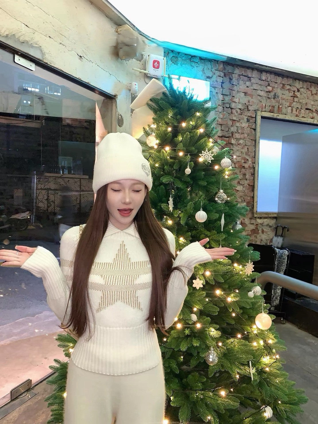 Tue. 1月幸運星 可愛滑雪系列翻領針織上衣