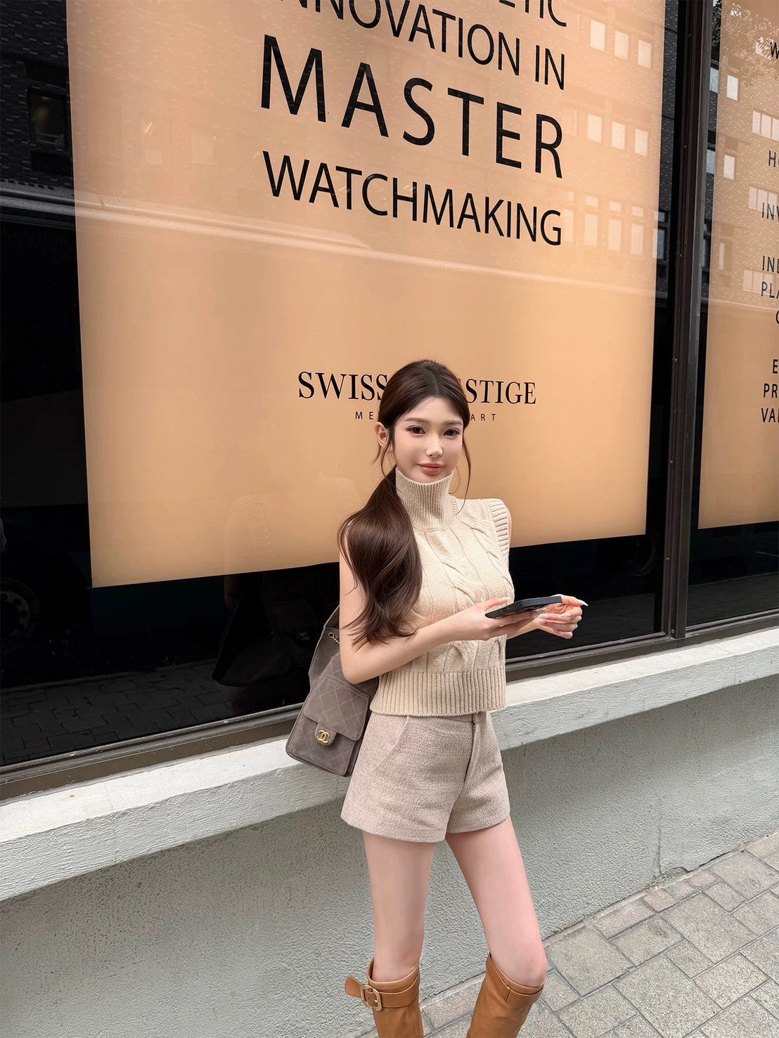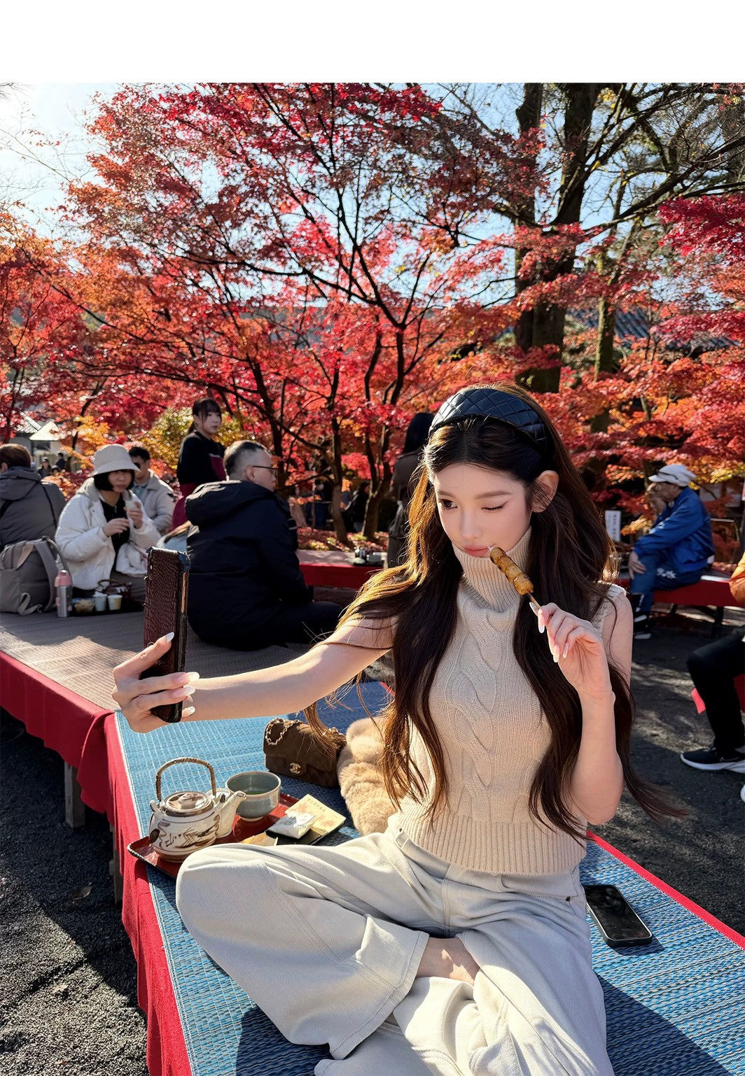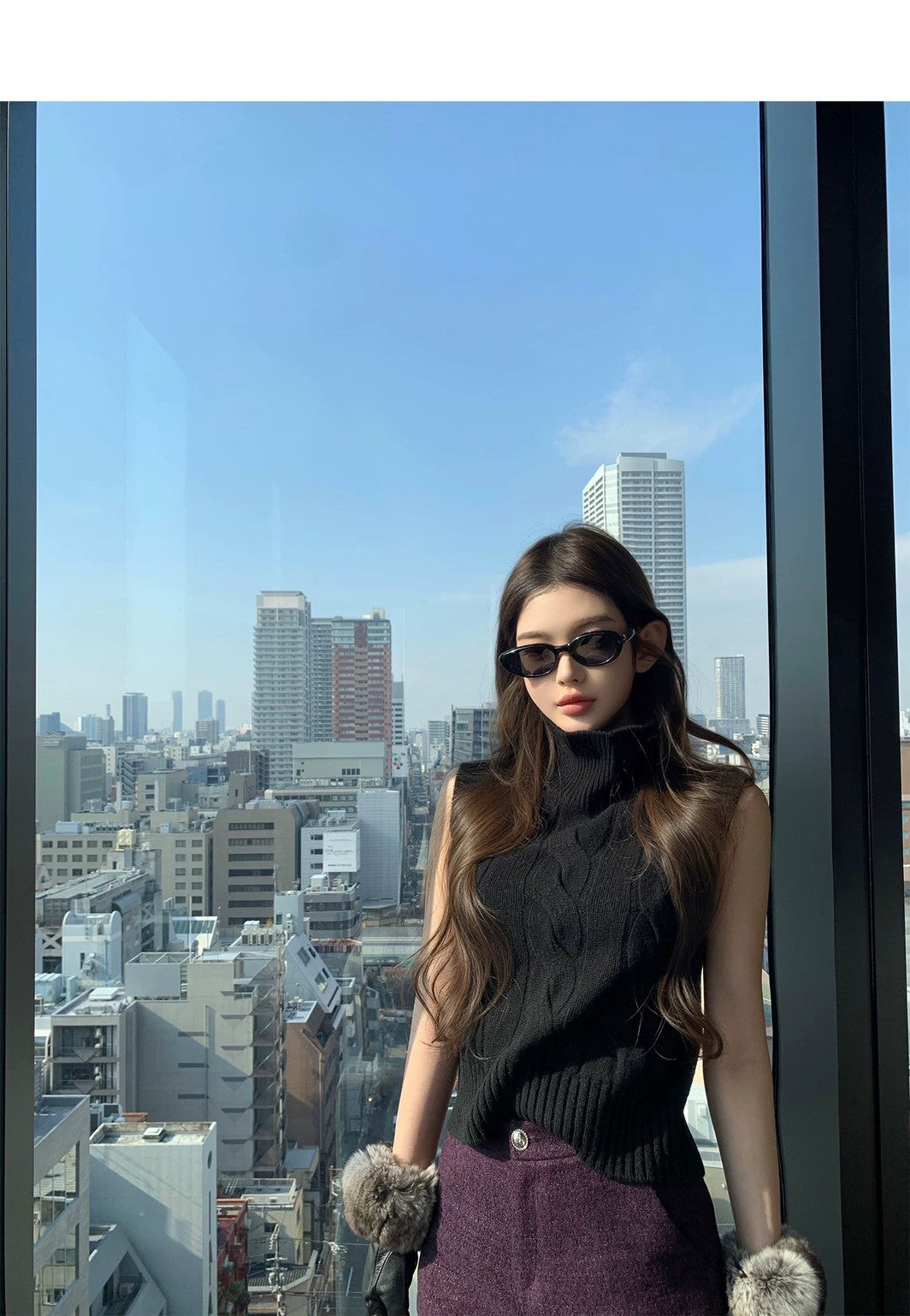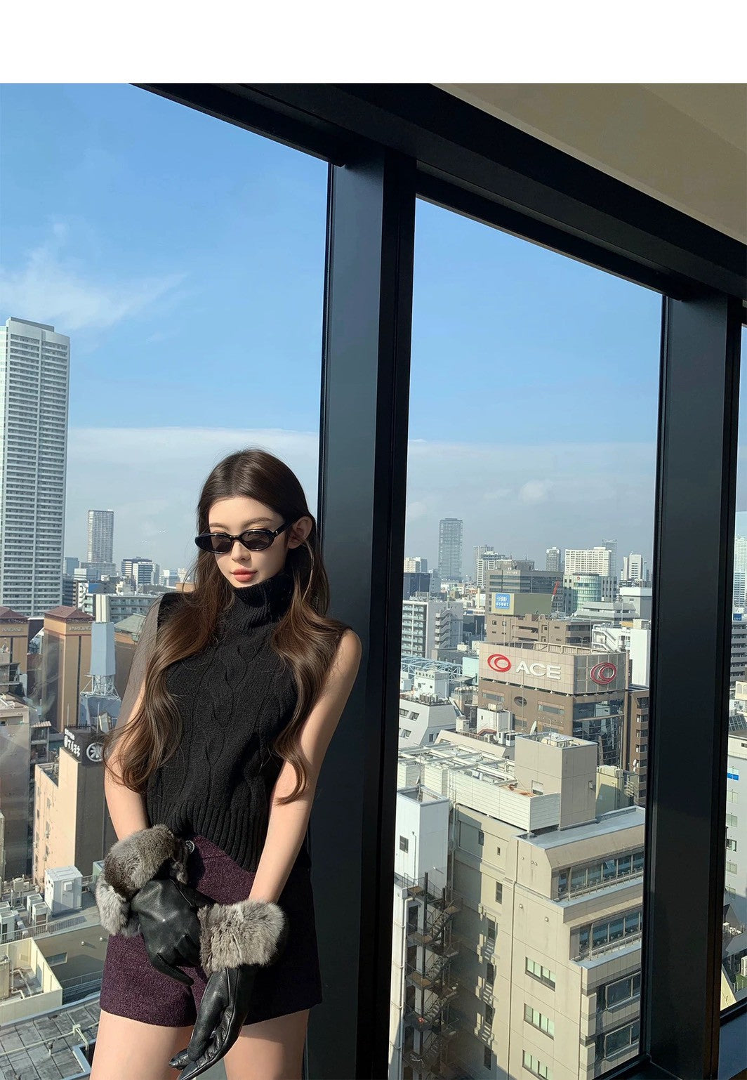 Tue. Oni小高領’’氣質麻花百搭針織背心 奶茶/黑