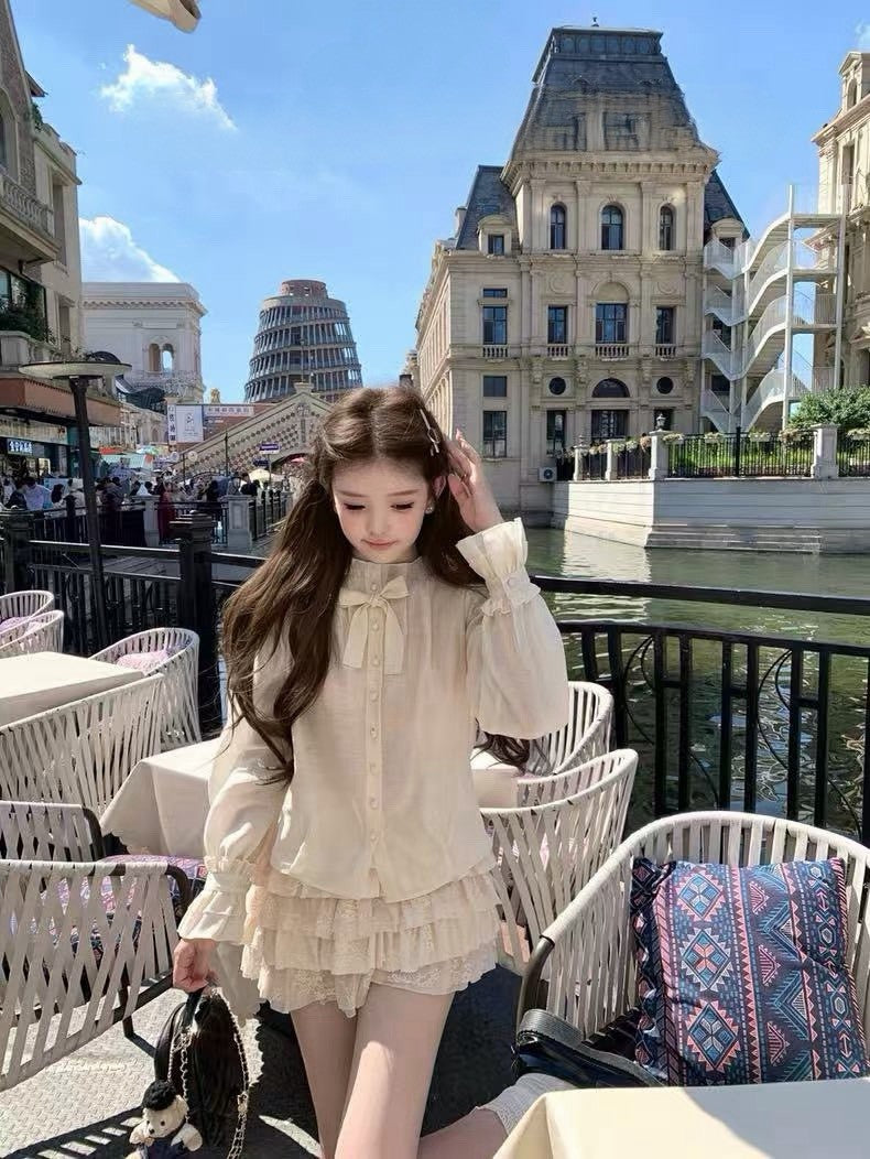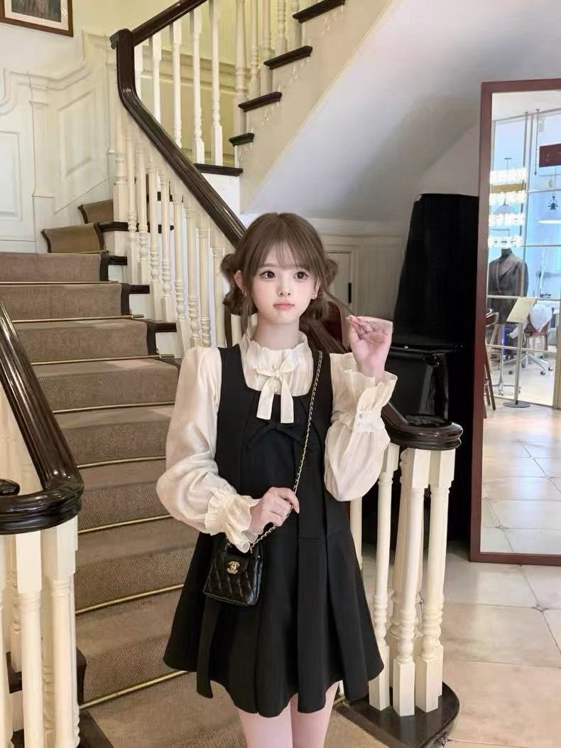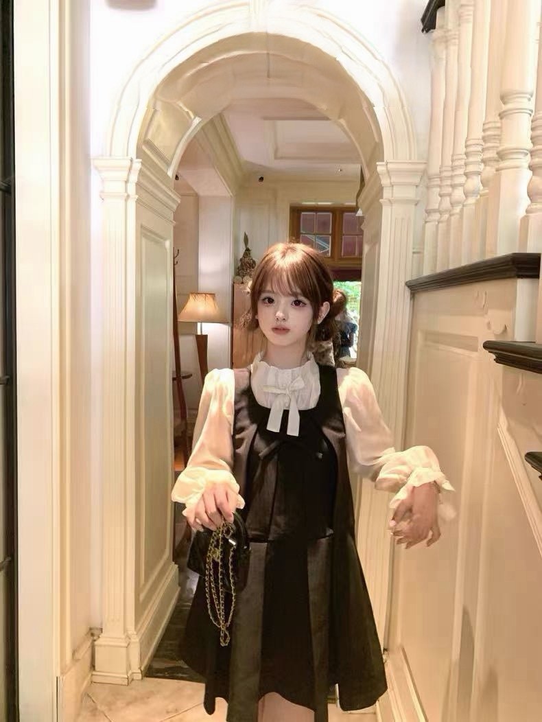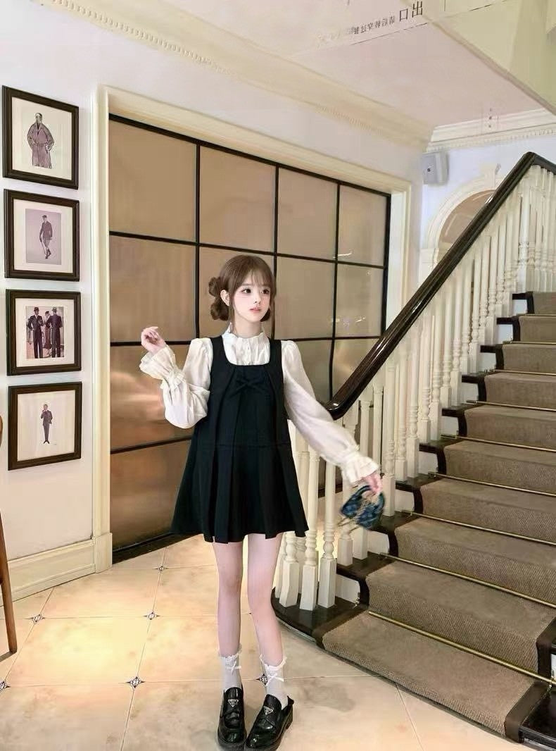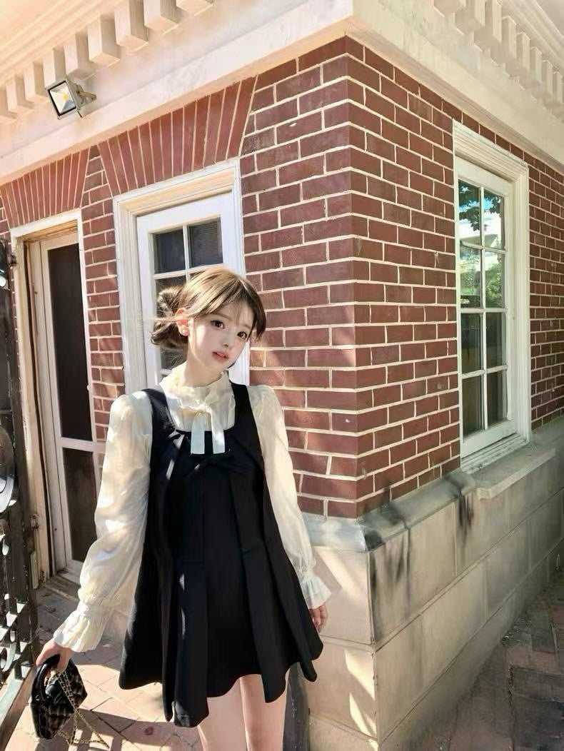 Tue. pra*秀款黑蝴蝶背心裙 珍珠紋襯衫 高級重工蛋糕半身裙