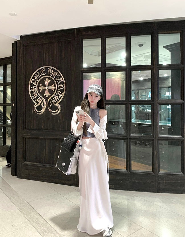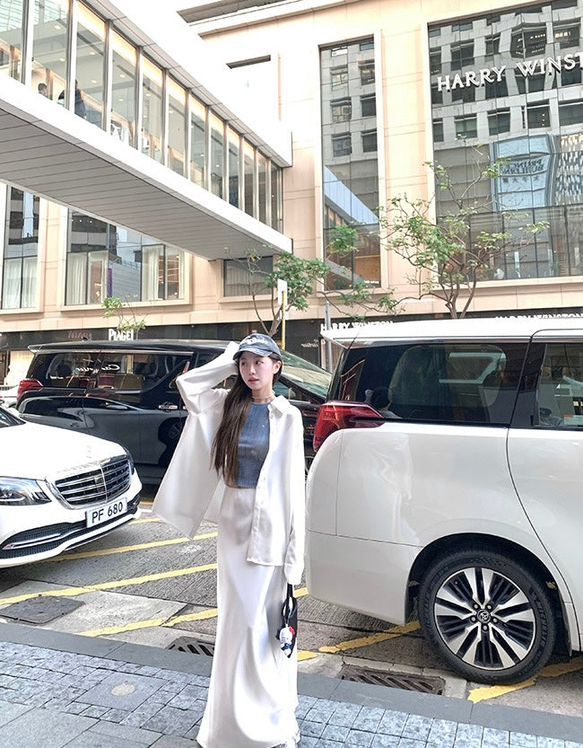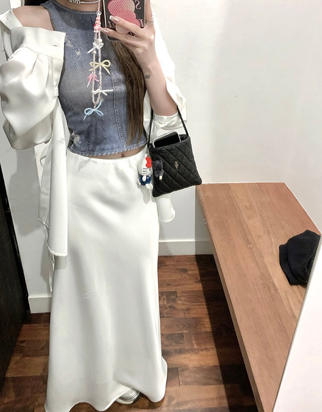 Wed. 人鱼姬流光 仿醋酸質感A字裙 白