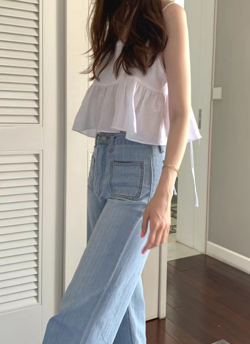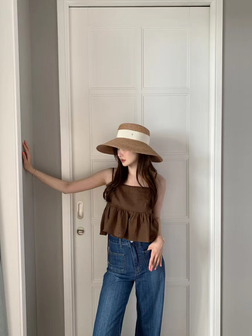 Wed. 後背綁帶美胸短版背心 白/咖