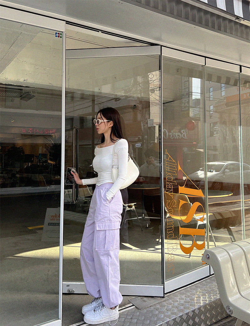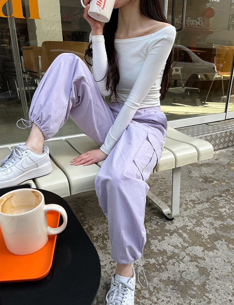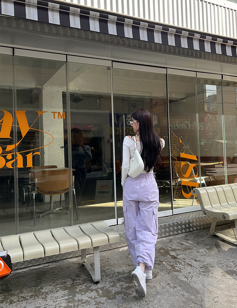 Wed.必買超顯瘦工裝褲Purple