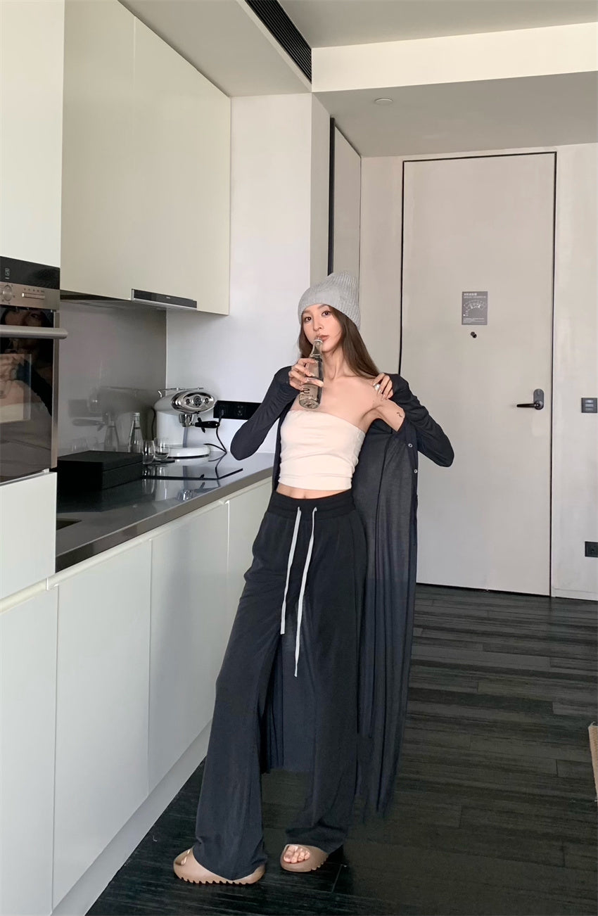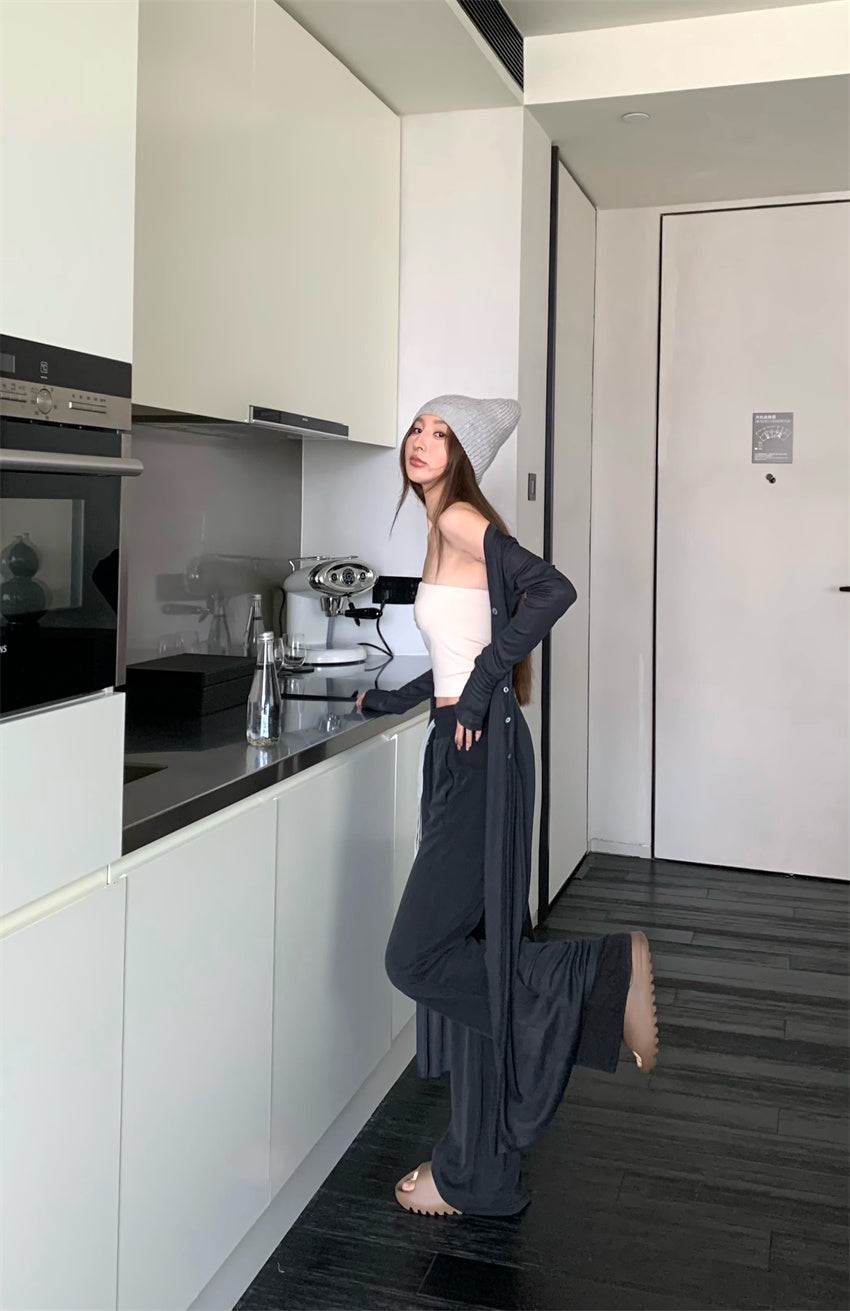 Wed. 慵懶透視感長外套 & 高腰休閒褲