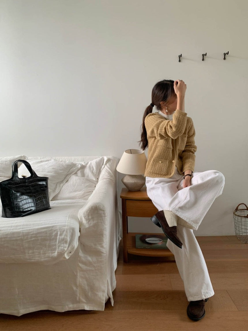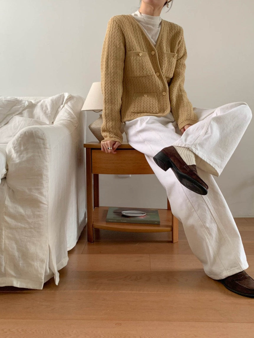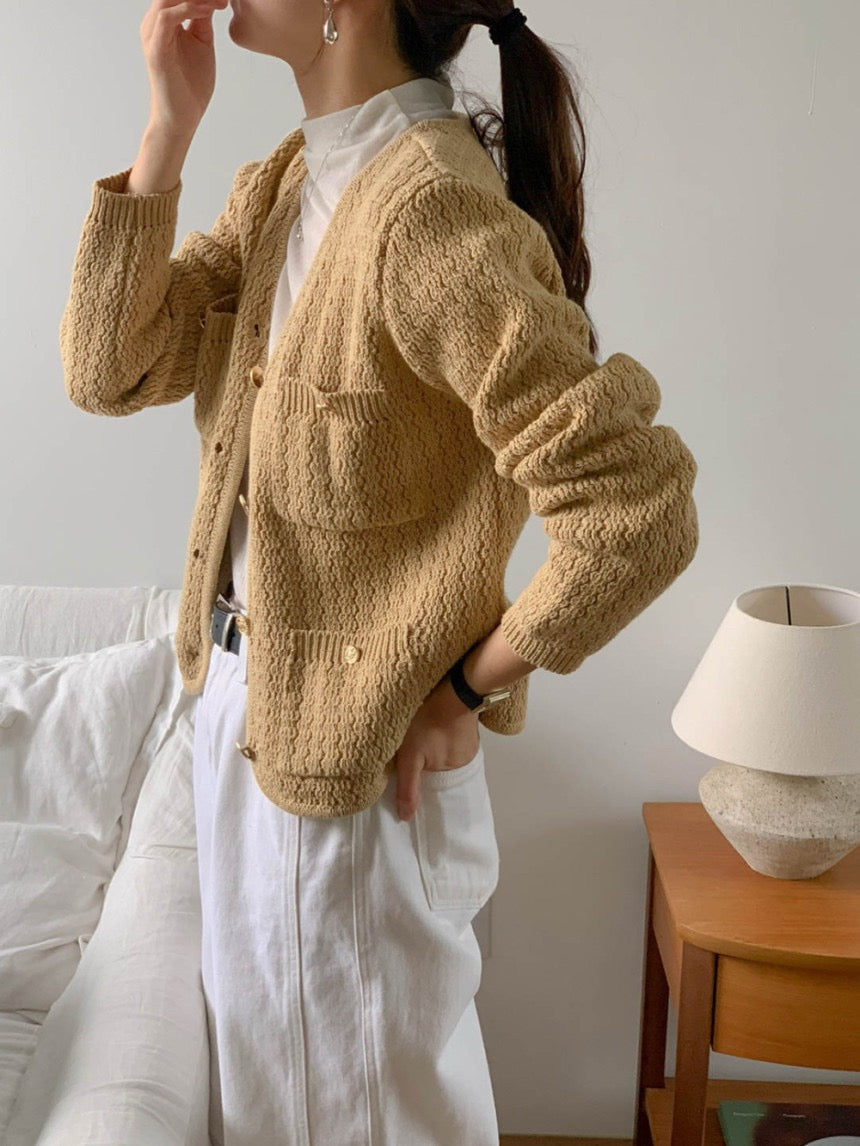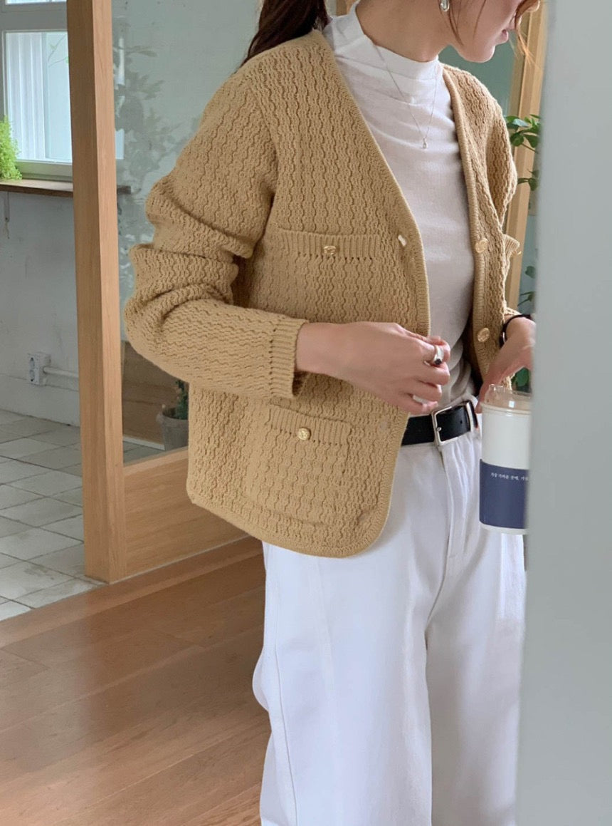 Wed. 氣質通勤單排金釦肌理針織外套 卡其