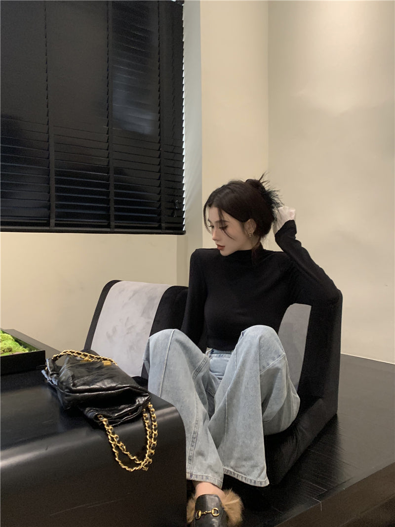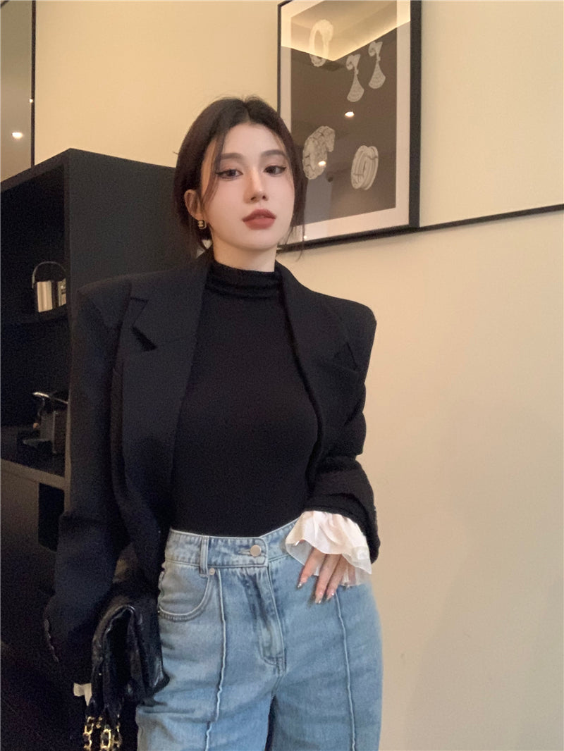 Wed. 法式高領花葉袖打底上衣 黑