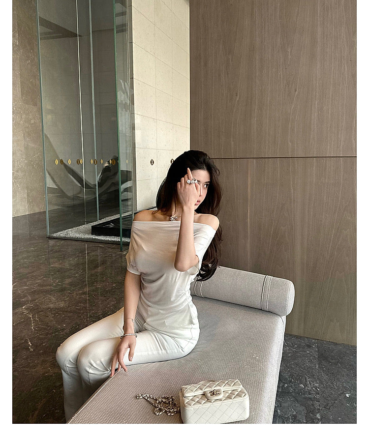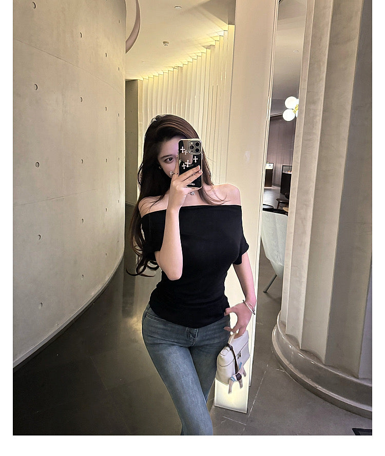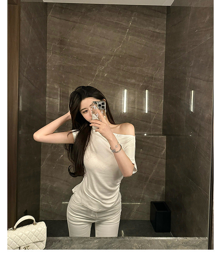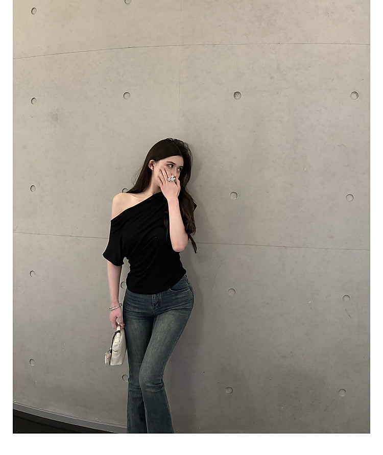 Wed. 百搭舒適感滿分 斜肩可兩穿慵懶上衣 黑/白