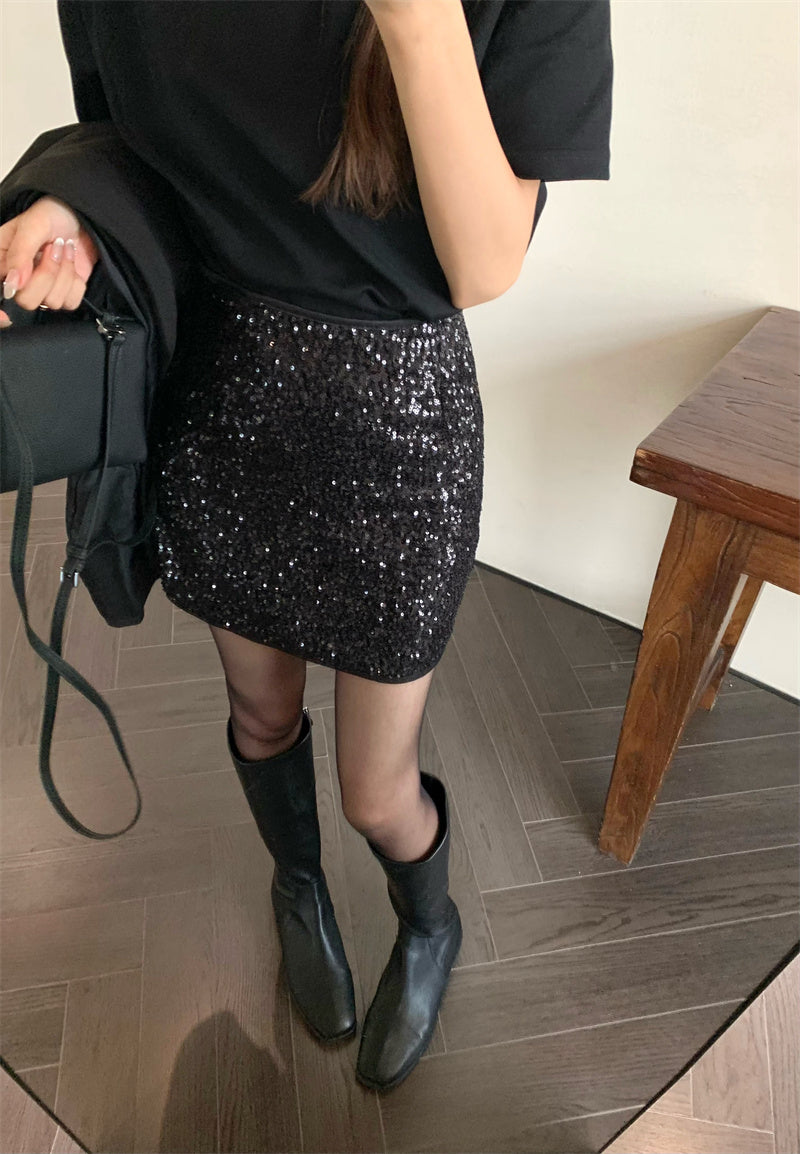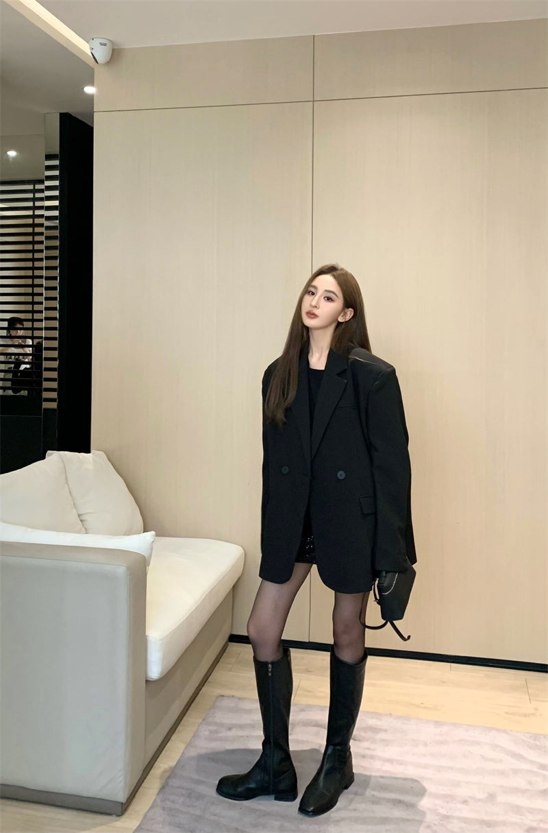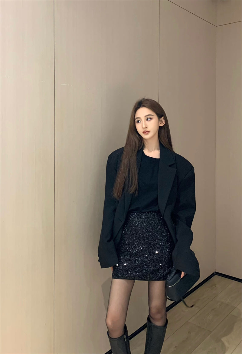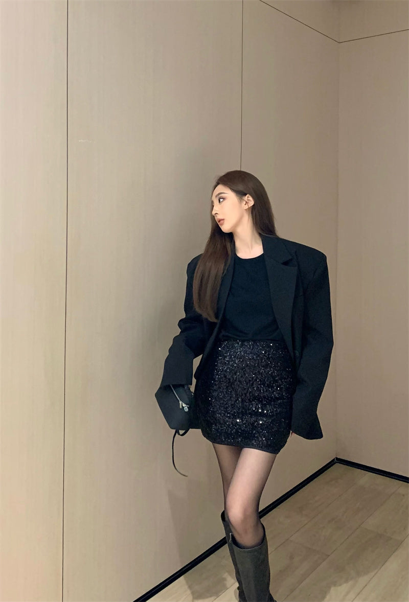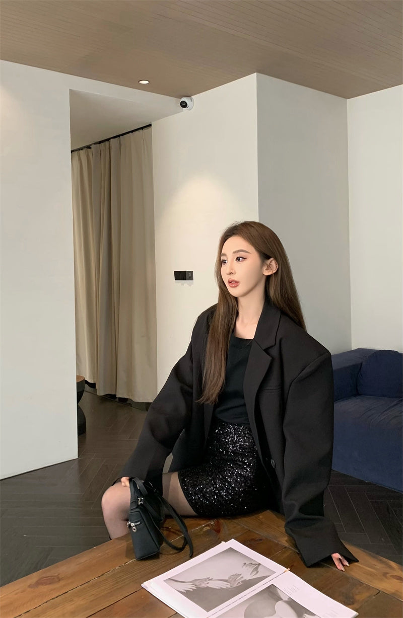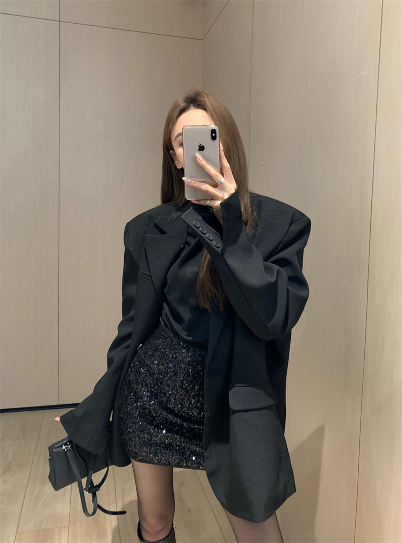 Wed. 通勤兩粒扣墊肩西裝外套 黑色亮片裙